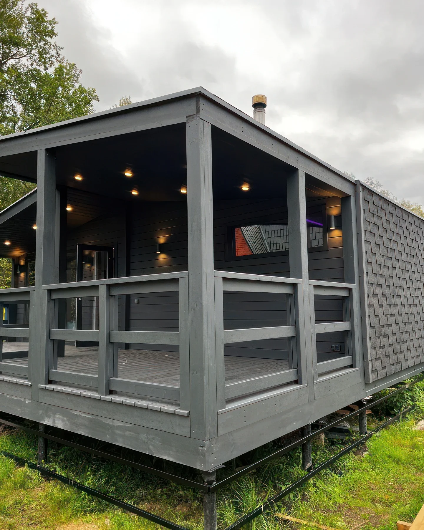 Fully finished and furnished sauna module with attached terrace